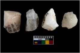 | Description / विवरण | There are n 4 flake cores. All of them are fully fluted flake cores without any trace of crested ridge flakes. |