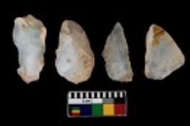 | Description / विवरण | There are n 4 utilized flake cores. There are multi directional irregular scar pattern on them. Three are tapering at one end and one has sharp edge. |
