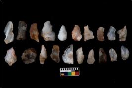 | Description / विवरण | There are n 20 flakes; there are multidirectional irregular scar pattern on them; made of short flakes, few are blades, few have pen pointed edges and few have tapering sharp edges. |