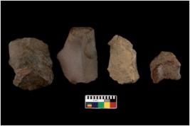 | Description / विवरण | Specimen of a cores with several broad fluted marks. Some of them are tapering at one end. |