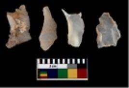 | Description / विवरण | There are n 4 utilized flake cores. There are multi directional irregular scar pattern on them. Three are tapering at one end and one has sharp edge. |