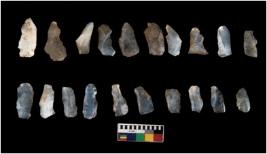 | Description / विवरण | There are n-20 microlithis, irregular in shape. Base is blunt and round. Tapering can be seen. |