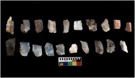 | Description / विवरण | There are n-20 microlithis. Most have flat base and some have blunt. Tapering can be seen on microlith. Few of them are chert. On top and bottom microliths are flat. |