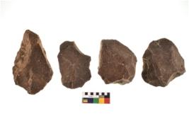 | Description / विवरण | Specimen of core with prominent flaking marks. It made up of a short flakes with sides trimmed. |