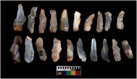 | Description / विवरण | There are n-20 microlithis, they are elongated in shape. Base of some are round and some of them are blunt. Tapering can be seen. Most of them are broad at the base and narrow on top. |