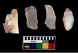 | Description / विवरण | There are n 4 utilized flake cores. There are multi directional irregular scar pattern on them. All of them are tapering at one end. |