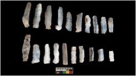 | Description / विवरण | There are n 20 microliths. All blades have retouched sides. Tapering can be seen. Some have flat base and some have blunt edges. |