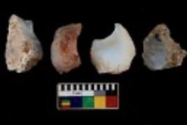 | Description / विवरण | There are n 4 utilized flake cores. There are multi directional irregular scar pattern on them. Three are tapering at one end and one has sharp edge. |