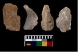 | Description / विवरण | There are n 4 utilized flake cores. There are multi directional irregular scar pattern on them. All of them are tapering at one end. |