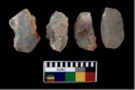| Description / विवरण | There are n 4 utilized flake cores. There are multi directional irregular scar pattern on them. All of them are tapering at one end. |