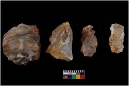 | Description / विवरण | There are n 4 of utilized worked cores and have multidirectional irregular scar pattern. Two are elongated in shape. |