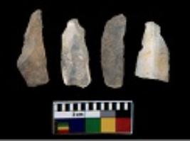 | Description / विवरण | There are n 4 utilized flake cores. There are multi directional irregular scar pattern on them. All of them are tapering at one end. |