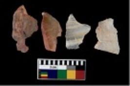 | Description / विवरण | There are n 4 utilized flake cores. There are multi directional irregular scar pattern on them. Two are tapering at one end and two have sharp edges. |