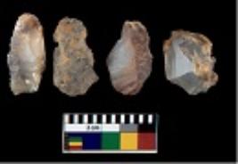 | Description / विवरण | There are n 4 utilized flake cores. There are multi directional irregular scar pattern on them. All of them are tapering at one end. |