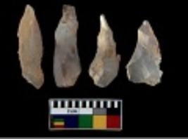 | Description / विवरण | There are n 4 utilized flake cores. There are multi directional irregular scar pattern on them. Two are tapering at one end and two have sharp edges. |