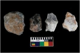 | Description / विवरण | Specimen of a cores with several broad fluted marks and some of them are tapering at one end. |