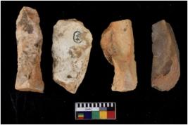 | Description / विवरण | Specimen of core with prominent flaking marks. It made up of a short flakes with sides trimmed. |