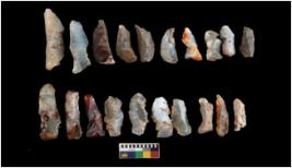 | Description / विवरण | There are n 20 microliths. All blades have retouched sides. Edges are flat and few are blunted. Tapering can be seen. Few are chert, other are chalcedony. |