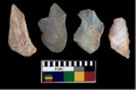| Description / विवरण | There are n 4 utilized flake cores. There are multi directional irregular scar pattern on them. All of them are tapering at one end. |