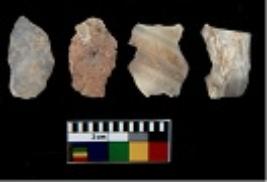 | Description / विवरण | There are n 4 utilized flake cores. There are multi directional irregular scar pattern on them. All of them are tapering at one end. |