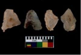 | Description / विवरण | There are n 4 utilized flake cores. There are multi directional irregular scar pattern on them. Two are tapering at one end and two have blunted edges. |