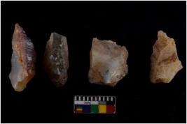 | Description / विवरण | There are n 4 of utilized worked cores and have irregular dominant scar pattern. Two are tapering at one end. |