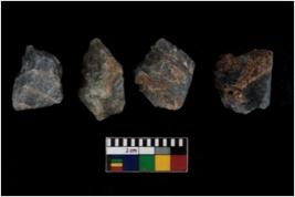 | Description / विवरण | Specimen of a cores with several broad fluted marks and some of them are tapering at one end. |