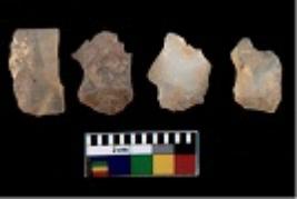 | Description / विवरण | There are n 4 utilized flake cores. There are multi directional irregular scar pattern on them. One is tapering at one end and three have blunted edges. |