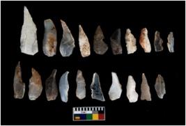 | Description / विवरण | There are n 20 microliths. All blades have retouched sides. Some are tapering at one end. Some have flat base. They are pin pointed on top. Base is broad. |
