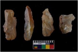 | Description / विवरण | There are n 4 of utilized worked cores. They show dominant scar pattern and have sharp edges. Two are tapering at one end. |