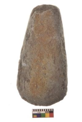 | Description / विवरण | Specimen of triangular shaped Axe with lenticular section and pointed butt. It is under side flat and upper slightly bulging out. |