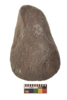 | Description / विवरण | Specimen of triangular shaped Axe with lenticular section and pointed butt. It is under side flat and upper slightly bulging out. It is having blunt edge. |