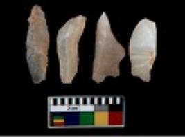 | Description / विवरण | There are n 4 utilized flake cores. There are multi directional irregular scar pattern on them. All of them are tapering at one end. |