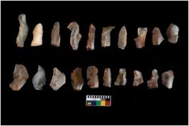 | Description / विवरण | There are n 20 blades. They show variation in size and shape. Some of them are blunted edges,a few are pointed edges, trapezes, and truncated blades, and some are tapered edges, one has arc edges. |