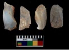 | Description / विवरण | There are n 4 utilized flake cores. There are multi directional irregular scar pattern on them. All of them are tapering at one end. |