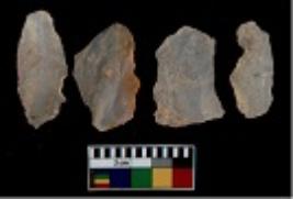 | Description / विवरण | There are n 4 utilized flake cores. There are multi directional irregular scar pattern on them. All of them are tapering at one end. |