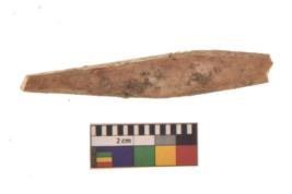 | Description / विवरण | Specimen of a bone point made on long bone, it is rectangular cross section in shape with flat and thick body. |