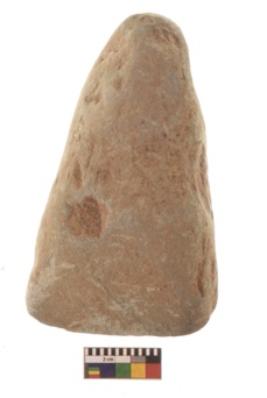 | Description / विवरण | Specimen of triangular shaped Axe with lenticular section and pointed butt. It is under side flat and upper slightly bulging out. |