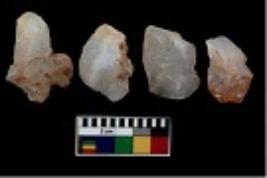 | Description / विवरण | There are n 4 utilized flake cores. There are multi directional irregular scar pattern on them. One is tapering at one end and three have blunted edges. |
