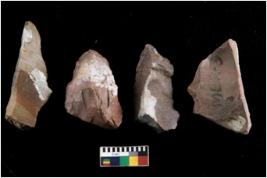 | Description / विवरण | There are n 04 objects; among them three can be characterised as blade core, one is having long sharp edges. Three are tapering at one end. |