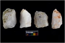 | Description / विवरण | There are n 4 flake cores. All of them are fully fluted flake cores without any trace of crested ridge flakes. |