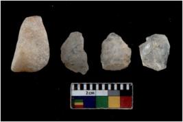 | Description / विवरण | There are n 4 cores; there are multidirectional irregular scar pattern on them. The reverse bulb and platform can be seen. |