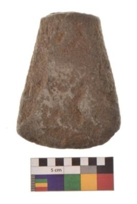 | Description / विवरण | Specimen of triangular shaped Axe with lenticular section and pointed butt. It is under side flat and upper slightly bulging out. |