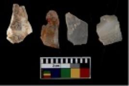 | Description / विवरण | There are n 4 utilized flake cores. There are multi directional irregular scar pattern on them. Two are tapering at one end and two have blunted edges. |