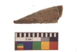 | Description / विवरण | Specimen of a polished bone point made on long bone, it has pointed top, It is rectangular cross section in shape with flat and thick body. |