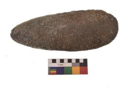 | Description / विवरण | Specimen of triangular shaped Axe with lenticular section and pointed butt. It is under side flat and upper slightly bulging out. It is having blunt edge. |