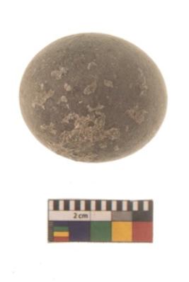 | Description / विवरण | A complete specimen of a spherical shaped hammer stone with battered surface. |