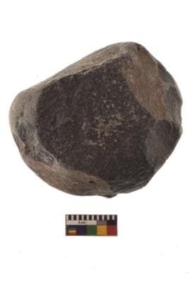 | Description / विवरण | Specimen of a spherical shaped hammer stone with battered surface |