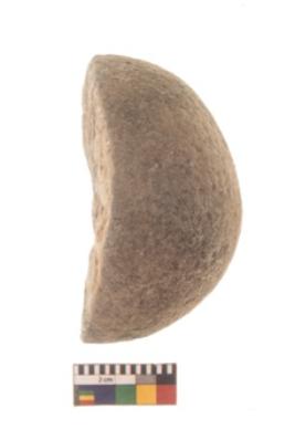 | Description / विवरण | Specimen of a spherical shaped hammer stone with battered surface. |
