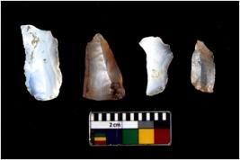 | Description / विवरण | There are n 4 flake cores. All of them are fully fluted flake cores without any trace of crested ridge flakes. Some are tapering at one end. Few have flat base whereas some have blunted edges. |